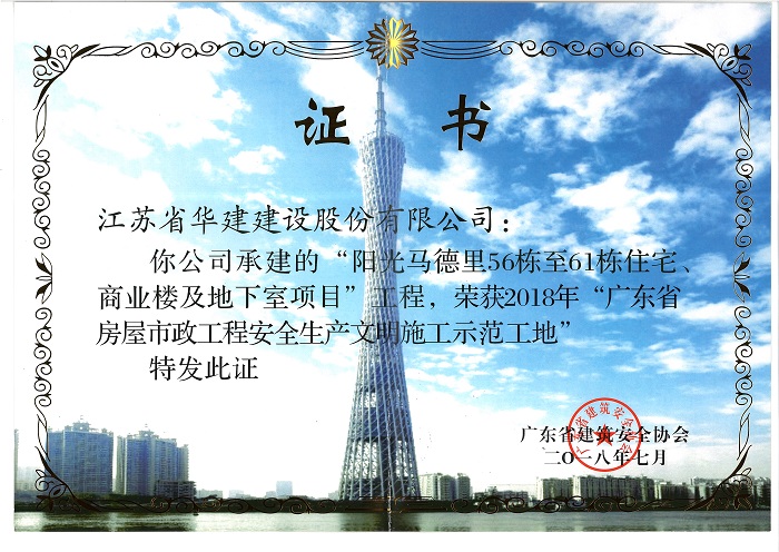 阳光马德里获2018年广东省建设工程项目安全生产生产标准化工地