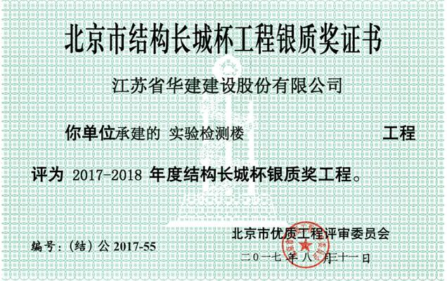 北京公司再创结构“长城杯” 时间:2017-10-24 3148 近日,北京市工程建设质量管理协会发文表彰了2017-2018年度北京市结构长城杯工程及获奖单位,由北京公司承建的金风科技试验检测楼项目获得结构长城杯银质奖。 此次获得结构长城杯奖项再度彰显了北京公司以质为本、用坚实品质赢得客户的不变理念。