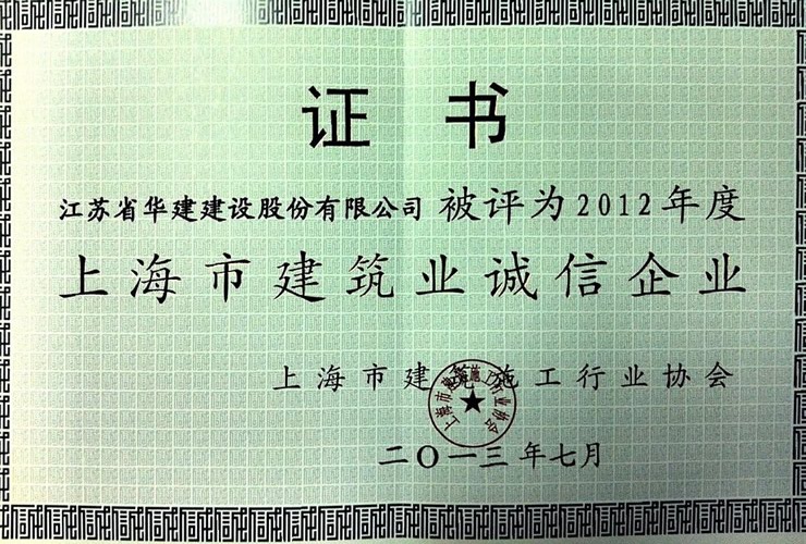 公司连续六年被评为“上海市建筑业诚信企业” 时间:2013-08-01 5070 上海分公司积极响应上海市行业主管部门要求全面贯彻落实《建设部成立于加快建筑市场信用体系建设工作的意见》号召,在加强行业自律和诚信建设方面做了大量有效工作,8月1日,在上海市建筑施工行业协会召开的2012年度上海市建筑业诚信企业颁奖大会上,公司被表彰为“上海市建筑业诚信企业”,这是第六次获此殊荣(在沪建筑施工企业仅240家)。