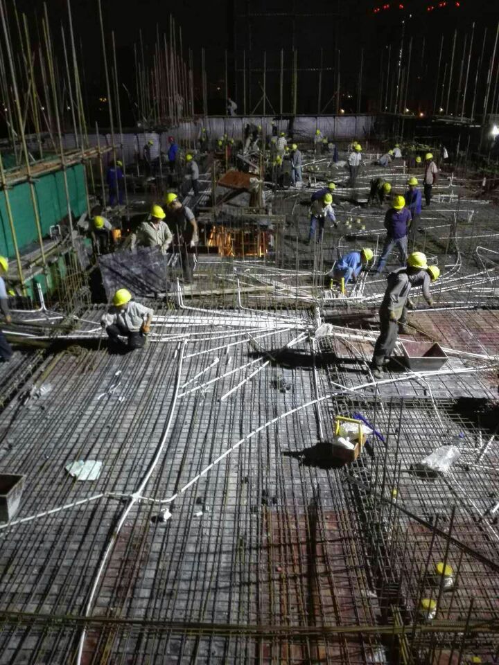 客户的要求就是使命。半岛官网入口网页版上海公司本着“客户至上”的原则,立即成立临时指挥部,上海公司苏南分公司、第八工程处全员出动,在短短的一个小时内完成了施工方案制订、班组人员协调和设备材料到位等全部准备工作。配置钢筋工46人、木工78人、瓦工18人、水电工23人。30日上午9点,开始墙柱钢筋绑扎作业,并在3个小时内完成任务,期间同时穿插木工搭设排架、安装墙板等施工作业。下午2点,模板顶板铺设基本完成,水电工2小时内完成水电预埋。下午6点,木工用时2小时完成吊模作业;实测实量组和项目部所有质检员全程跟踪检查验收,严把工程质量关。夜间10点,完成问题整改使之具备砼浇筑条件。31日凌晨4点,七层主体工程砼浇筑工作全部完成,也由此创造出半岛官网入口网页版上海公司“24小时浇筑一层楼”的施工新速度。