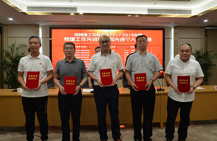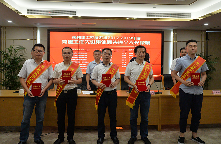 在建党98周年、新中国70华诞来临之际,6月28日下午,建工控股公司党委隆重召开扬州建工控股系统“七一”表彰大会,对自2017年以来为推进系统企业改革发展作出突出贡献的8个先进基层党组织、30名优秀共产党员、10名优秀党务工作者进行表彰。会上,华建上海分公司机关党支部被授予“先进基层党组织”称号,公司副总会计师束震、安装处主任韩何两位同志被表彰为“优秀共产党员”。
