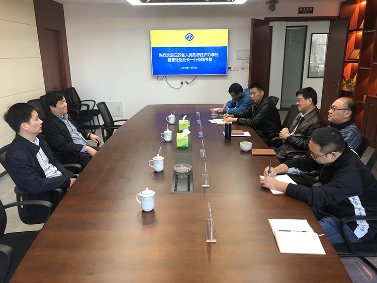 11月17日下午,江苏省驻沪办建管处赵永强处长一行走访公司考察,公司总经理杨杰、总工魏春明等领导参加活动。