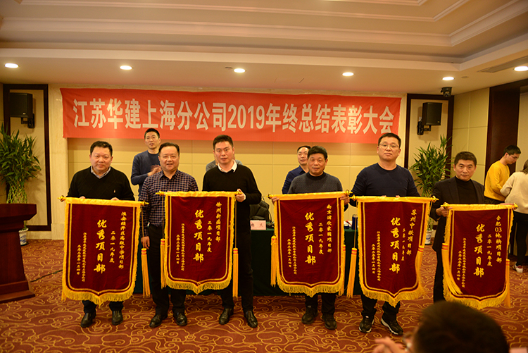 会议对2019年涌现出来的先进集体和先进个人进行了表彰。公司总工魏春明宣读了《关于表彰2019年度优秀团队、优秀项目部、先进个人的决定》。在激昂奋进的乐曲声中,公司对八处、安装处、李恒山团队等3个优秀团队,徐州新盛项目部(安装处、安装二处)、淮安经济开发区高级中学项目部(华一分)、苏州中欧项目部(三处)、合肥03地块项目部(八处)、南京浦欣家园项目部(蒋仁艮团队)等5个优秀项目部,18名公司综合先进个人和32名单项先进个人,以及年度安全文明无事故奖进行了颁奖表彰。