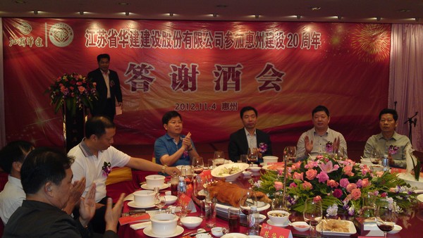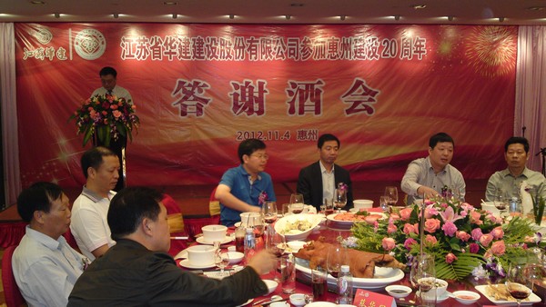 11月4日,公司在惠州凯宾斯基酒店王子饭店隆重召开参加惠州建设20周年庆典暨答谢酒会,公司副董事长、总经理宗有农主持酒会并作开场致辞。惠州市有关政府部门、部分合作方企业的负责人,华建联盟成员单位负责人,公司董事、监事和高管等130余人出席庆典。惠州公司总经理华恒荣介绍了公司参加惠州建设20年的有关情况。惠州市工商联主席、公司战略合作伙伴恒宇实业集团公司董事长杨满芳代表合作方发言,惠州市住房和城乡规划建设局副局长陈训政代表政府主管部门致辞,分别对半岛官网入口网页版进驻惠州施工、参加惠州建设20周年表示祝贺。公司董事长陆金龙代表公司总部对惠州市有关政府部门、相关合作方和社会各界人士给予公司的关心和支持表示诚挚的感谢,并表达了进一步加大支持力度、加强战略合作、加快科学发展的意愿。