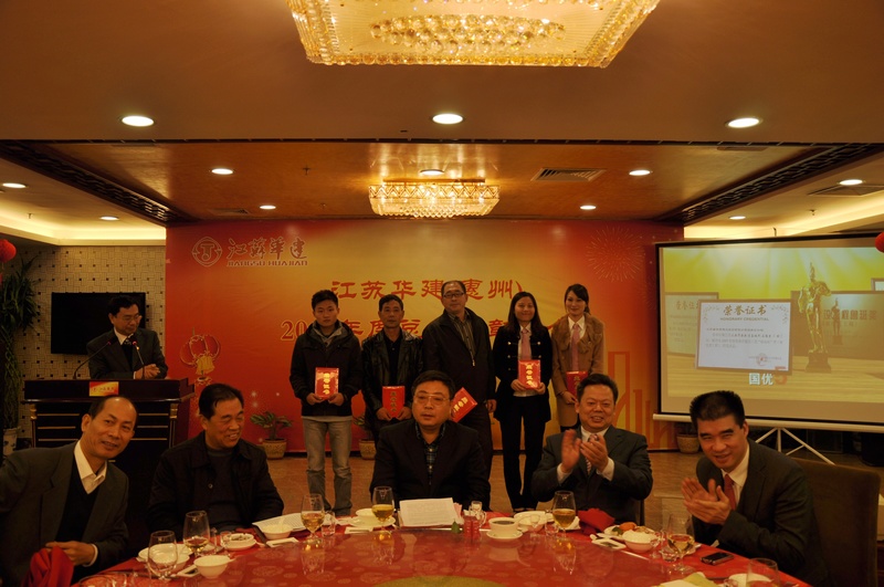 会上,惠州公司总工程师庞文荣宣读了《关于表彰2012年度先进集体、先进个人的决定》,一批先进集体和先进个人受到表彰、授牌。表彰会上,宗有农总经理还发表了热情洋溢的讲话,他对一年来惠州公司狠抓经营,强化管理,严控风险,成功举办进惠施工20周年庆典等工作业绩,给予了充分肯定,让与会同志备受鼓舞。就未来发展,他勉励惠州公司要有序推进市场拓展,稳步构建区域架构;强化管理防范风险,优化机制提升质态;同举大旗共谋发展,携手并肩提升品牌。