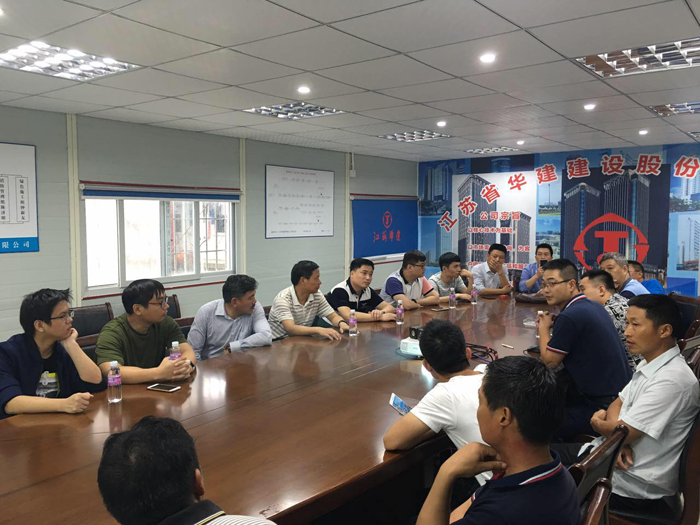5月24日,在参加完新版标准培训后,惠州公司总经理周群利带领技术质量、安全、经营及项目部有关人员一行10人,赴珠海公司承建的横琴隆义广场、华策国际大厦两个项目参观学习。