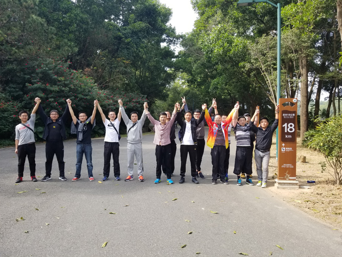 8时整,全体人员准时从红花湖景区入口处出发,沿着红花湖绿道向前奔跑。郁郁葱葱的高榜山和平滑如镜的红花湖合成一幅优美的画卷映入眼帘,让人神清气爽。大家在迎接体力和耐力挑战的同时,也享受着跑步带来的快乐。跑步过程中,大家争先恐后,你追我赶,不甘落后,均坚持跑完或走完全程。