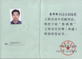 他努力践行科学发展观,狠抓施工技术管理,担任项目经理多年,负责施工的工程屡创佳绩,屡获殊荣,他负责施工的项目达35项之多,建筑面积97万m2,其中18层以上31幢。工程质量幢幢优良,8项工程获江苏省优,1项获广东省优工程,6项获深圳市优,两项获深圳市最高质量荣誉“金牛奖”,两项问鼎中国建设工程最高质量荣誉鲁班奖。袁邦权项目部业成为业内有影响的锃亮品牌,先后被授予公司双文明先进集体、公司思想政治工作先进单位,“江苏省青年文明号”、“全国青年文明号”等光荣称号。