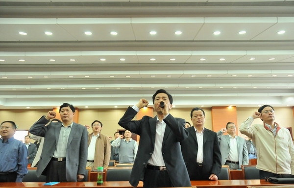 5月27日上午,建工控股公司机关、华建总部党员干部和扬建、扬安、华宏、中专校等单位领导班子成员及党务、纪检、财务、行政等部门中层负责人共80多人,到扬州市警示教育基地参观接受教育,大家观看了预防腐败警示教育宣传图片、电视专题片和违法犯罪人员现身说法录像。建控公司党委书记、董事长陆金龙在参观结束前作了诫勉讲话,指出这次建控系统组织党员干部开展廉洁自律警示教育活动,是加强干部能力作风建设的一项重要内容。一系列反面案例带来的教训和思考,令大家深受触动。见不贤而内自省。建控系统广大党员干部要从确立正确的角色定位、树立合理的人生追求、建立完善的制度保障、打造健康的从业环境四个方面入手,进一步加强廉政教育、树立自律意识、保持清廉本色,从而提高干事业、谋发展的能力和水平,为创建“三个扬州”、建设和谐社会作出应有贡献。最后,陆金龙同志带领大家集体进行了庄严的廉政承诺宣誓。