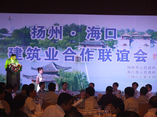 海口市副市长徐敏生、副市长丁竹、住建局局长杜海鹰、扬州市城建局局长杨正福、规划局局长汤卫华参加了扬州·海口建筑业合作联谊会及相关活动。