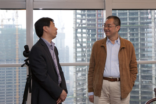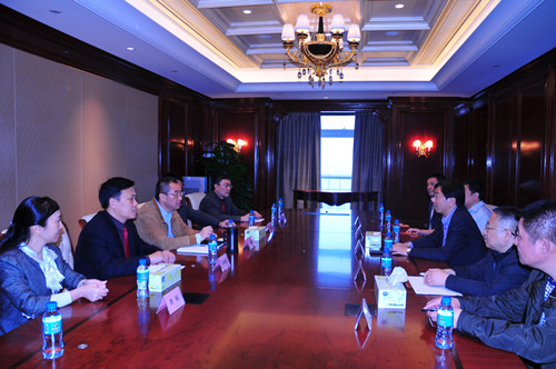 4月11日下午,陆金龙董事长专程赴广州恒大中心拜访恒大集团董事局副主席、总裁夏海钧博士,公司副总经理兼总工程师程杰、副总经理王宏、缪国枢和总会计师李长栋随同拜访。恒大集团夏海钧总裁和林漫俊、余伟桥副总裁等领导会见了陆董事长一行,双方在热情友好的气氛中进行了会谈。陆董事长首先感谢夏海钧总裁去年在百忙之中参加华建成立三十周年庆祝大会,介绍了华建的发展近况和承建的恒大工程项目的有关情况,希望双方进一步确立深入稳固的战略合作伙伴关系,增加合作领域,拓展合作业务工程量,并邀请恒大集团赴扬州共同合作建设商业综合体项目。