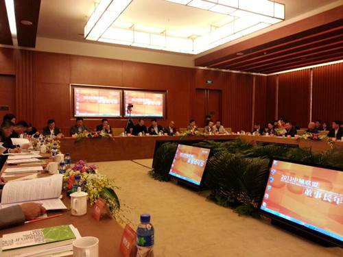 在这次会议上,中粮地产集团董事长周政首先致欢迎辞,中粮集团董事长宁高宁亲自参与接待,陪同参观忠良书院和中粮博物馆,并与大家进行了观点分享。中城联盟轮值主席、青岛新地集团董事长漆洪波在会上致辞并作了一周年工作简报。中城联盟有关专业委员会主任、相关单位董事长向炯、陈劲松、陈俊、颜明等分别就2013年中城联盟联合采购工作、产品“时权交换”、 “联合招商”、商业资源整合等做了专题汇报。会上,华远集团董事长任志强、万通集团董事长冯仑就当下地产形势做了重点发言,陆金龙董事长与各会员单位董事长一道就宏观经济环境、房地产发展走势、中城联盟商业资源整合等话题进行了广泛的交流探讨。