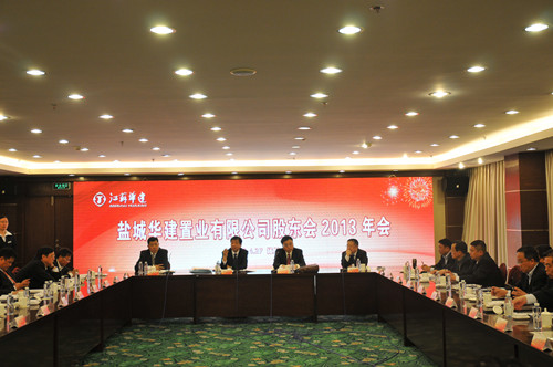 4月27日上午,盐城华建置业有限公司股东会2013年会在扬州召开,华建地产董事长程杰主持会议,会议听取并审议通过了缪文明所作的经营层工作报告。