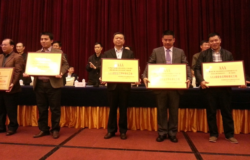 公司再添两项全国“AAA级安全文明标准化工地” 时间:2013-11-16 3304 11月14日,中国建筑业协会建筑安全分会2013年年会在合肥召开,会议通报表彰了一批2013年度全国AAA级安全文明标准化诚信工地,公司承建的倚能 •美林湾项目和淮安翔宇大厦项目名列其中,公司副总经理、海南公司总经理王宏出席会议并领奖。 AAA级安全文明标准化诚信工地是我国安全文明施工方面的最高奖项,旨在规范建筑施工安全生产,保障建筑职工安全与健康,提高施工现场安全管理水平,自2009年中国建筑业协会启动“AAA级安全文明标准化工地”评选以来,公司共获该奖8项。
