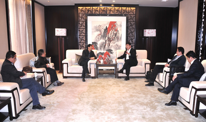 陆金龙董事长与九鼎投资高管洽谈项目合作 时间:2013-11-21 5295 11月20日,陆金龙董事长在公司企业展示中心会见了昆吾九鼎投资管理有限公司合伙人岳锦、副总裁朱成彦等高管一行。 在展示中心会客厅,双方互相介绍了各自公司的发展概况,就西安曲江项目的合作进行了洽谈,同时双方还对企业的管理理念、分配机制以及投融资等方面进行了交流。扬州现代金融投资集团副董事长、总经理刘研、公司高管程杰、陆俊等陪同参加。