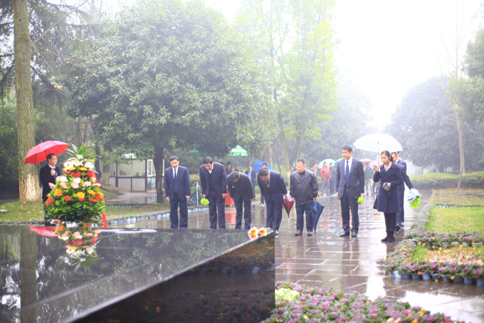 陆金龙董事长一行瞻仰邓小平同志故居 时间:2013-11-22 3706 11月22日中午,陆金龙董事长携公司部分高管冒雨瞻仰了位于四川广安的邓小平同志故居,缅怀邓小平同志的丰功伟绩,学习邓小平同志的革命精神。大家怀着无比崇敬的心情向邓小平同志铜像敬献了花篮。 陆董事长表示,邓小平同志为中国革命、建设和改革事业建立了伟大功勋,特别是推动改革开放让中国走上经济发展快车道。华建是迎着改革开放的号角而生,随着特区建设而不断做大做强,我们要深刻领会小平同志“发展才是硬道理”精神,专注发展,致力提高,不断加强企业影响力和核心竞争力。公司高管程杰、缪国枢、李长栋等一同参加。