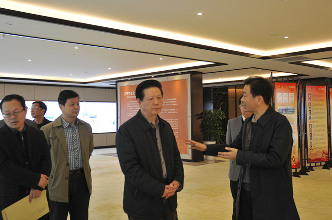1130下午,扬州市政协主席洪锦华一行来公司调研。在陆金龙董事长的陪同下,洪主席一行参观了华建展示中心,并听取了华建企业发展的情况汇报。