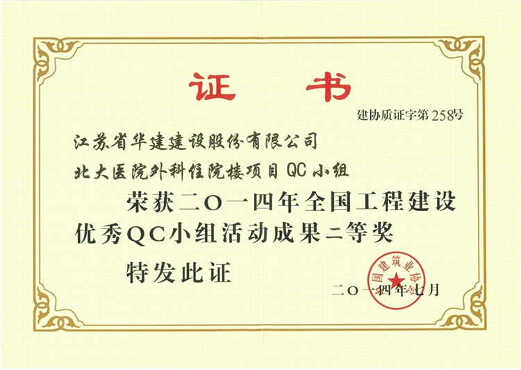 公司两项目荣获2014年中建协优秀QC成果奖 时间:2014-07-23 4217 近日,公司推荐的两项QC成果在中国建筑业协会举办的2014年全国工程建设优秀QC小组活动成果交流会上荣获一、二等奖,分别是北京公司的投资服务中心项目QC小组《提高插接式一体化节能铝板幕墙安装合格率》和深圳公司的北大医院外科住院楼项目QC小组《提高外墙砂胶仿瓷砖涂料施工质量合格率》。今年共有29个地区、17个行业(总公司)协会推荐申报的875个全国工程建设优秀QC小组活动成果参与交流发布。