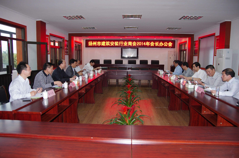 1010日下午,扬州市建筑安装行业商会2014年会长办公会在江苏仪建集团会议室召开,11家会长和副会长单位的负责人参加会议,陆金龙会长主持会议,市委统战部副部长、市工商联党组书记、常务副主席赵振东出席会议。