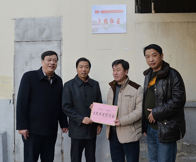 陆金龙董事长赴文明结对共建社区走访慰问 时间:2014-12-23 3485 12月23日上午,公司董事长陆金龙、纪委书记、工会主席钱启明一行赴公司文明结对共建的市城北乡卜杨社区进行走访慰问,并送上节日慰问金。陆董事长向社区赵华平书记了解了社区的基本情况和近期发展打算,并与社区主要领导对下阶段共建内容和计划进行了简单交流,为明年共建工作打好基础。 作为结对共建单位,公司积极响应市委市政府号召,始终坚持从解决当地实际困难出发,为百姓做好事、做实事,让他们深刻感受到华建对社区结对共建工作的重视和对百姓的浓浓关怀。