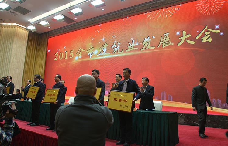 半岛官网入口网页版获评扬州市建筑业先进企业 时间:2015-02-25 3324 2月25日,扬州市委、市政府召开全市建筑业大会,总结2014年全市建筑业工作并部署2015年工作。陆金龙董事长、宗有农总经理出席会议。会上半岛官网入口网页版被表彰为2014年度扬州市建筑业先进企业;建工控股公司获市政府建筑业目标管理奖三等奖;宗有农总经理被授予2013-2014年度扬州市建筑功勋奖章,胡华兵等2人荣获扬州市建筑业先进个人等荣誉称号。