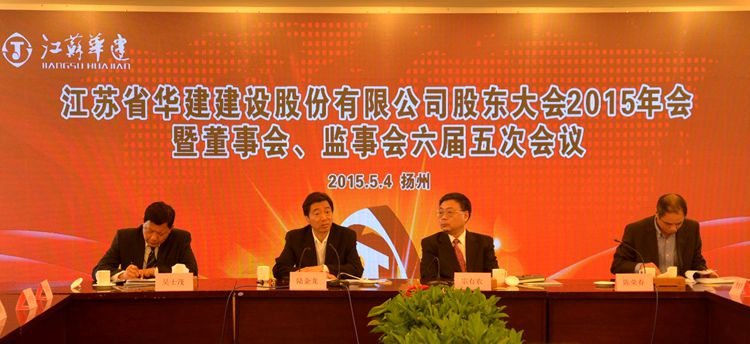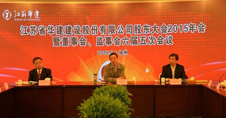 扬州市政府分管建筑业副市长闻道才到会并致辞。他首先代表市政府对公司股东大会的召开表示祝贺。他指出2014年扬州建筑业发展速度、发展质量都取得长足进步,作为扬州建筑业的排头兵,领头雁,华建很好的起到了标杆引领作用,为扬州建筑业打响品牌,为地方经济的发展都作出了巨大贡献。华建经过这几年的发展,核心竞争力明显强,综合效益稳步提升,管控水平不断提高,企业在市场竞争中积极完善体制,加强队伍建设,凝聚力、影响力不断增强。接下来,闻市长从宏观经济形势入手分析了当前新常态下企业面临的挑战和机遇。对下一步的发展闻市长提出几点建议,一是保持清醒头脑,重大决策要更严谨科学,持续稳定发展;二是在资质管理上进一步完善提升,认真对待住建部专项治理行动,深刻领会,措施到位;三是不断开拓市场,把握好一带一路和区域板块发展重要契机;四是夯实主业基础上,在重大基础设施方面(路桥、管网、园林等)有所拓展;五是机制不断创新,管理不断强化,制度建设更人性化、科学化、严谨化;六是打造独特的企业文化,用文化凝聚人,不断放大企业影响力、竞争力,使华建成为百年企业。