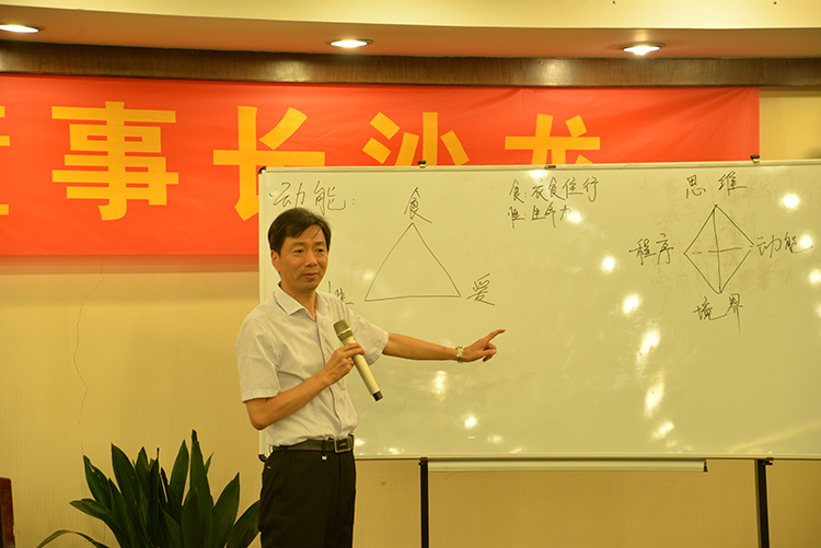 在主题活动董事长沙龙阶段,11家成员单位的董事长重点就新常态下企业如何建立科学有效的分配激励机制登台分享路演,围绕机制创新、成功案例进行分享,针对企业发展过程中遇到的问题提出困惑。企业多元持股结构、区域公司模拟股份制、项目股份制、责任经营等等,成功经验各具特色;物质刺激达不到效果、职业合伙人如何向事业合伙人转变、岗位年薪量化不科学等等,各类问题不一而足。陆主席逐个“诊断把脉”,条分缕析地给出指导建议和应对之策。他指出,凡是事业不成功就是不懂得约定,舍得分只是格局,懂得分才是智慧。老板要善于经营落差,数字说话,结果导向。经营人就是要经营人的神圣感,要把有本事的员工渡到他要去的彼岸,让员工与社会、企业互生,先富起来,再立起来,然后再贵起来,从利益共同体向荣誉共同体和精神共同体过渡。最后,他提出了四个方面的要求:一是思维方面,他从“定义、原则、分配、市场化”这个金字塔维次上强调,分配需要通过股权化、期权化、分红化、薪酬化来运作,实现自主化、合作化、市场化、标准化。老板绝尘,让全体员工发力,为过程鼓掌,为结果买单;二是程序方面,分配要有利他思想,对公司、分公司、项目团队和个人都要分红;三是境界方面,一个人的执行力可以看他的状态、能力和立场,老板和员工双方都要进入新境界变成一伙人才能把公司搞好;四是动能方面,要从食(衣食住行)、性(生命力)和爱(爱自己、爱家庭、爱家族、爱公司团队)方面全面要求,站在行业前沿,才能引领行业前行。