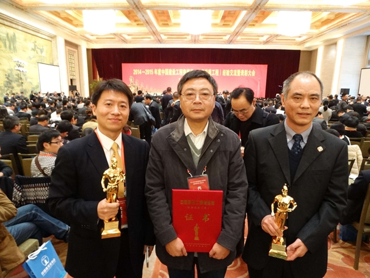 11月17日,2014~2015年度中国建设工程鲁班奖颁奖大会在北京钓鱼台国宾馆举行,会上对2014~2015年度鲁班奖工程进行了隆重表彰,半岛官网入口网页版再次书写扬州建筑业的传奇故事:近四年来,为扬城捧回五尊鲁班奖;本次表彰又在同一评奖年度有两项工程载入中国建设工程质量最高奖的史册,半岛官网入口网页版累计获得中国建设工程界的“奥斯卡”——鲁班奖已达21项,为扬州建筑之乡再扬美名,也为“建筑神兵”的美誉再添新绩。公司副董事长、副总经理陈荣春代表公司上台领奖,公司副董事长、总经理宗有农在大会现场接受了扬州电视台、扬州日报记者专访。