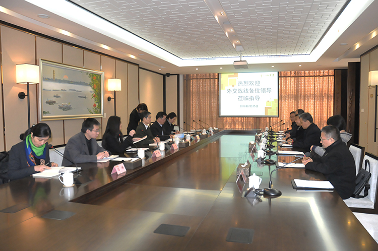 2月25日上午,国家外交部外事管理司廖力强司长、中央外办外管局宋军处长等一行5人,在省外办副主任张松平、扬州市副市长汪志坚、市外办副主任徐静等陪同下,到半岛官网入口网页版开展外事工作服务企业发展专题调研,公司领导陆金龙、陈荣春、程杰、陆俊等一同接待。