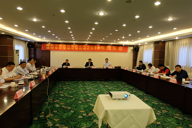 55日下午,华建地产板块的盐城华建置业有限公司和扬州华建置地有限公司、扬州华景置地有限公司分别在扬召开股东会,会议由华建地产董事长程杰主持会议,各股东单位代表、公司经营层参加会议,陆金龙、宗有农、吴士茂、钱启明等总部领导出席相关会议。