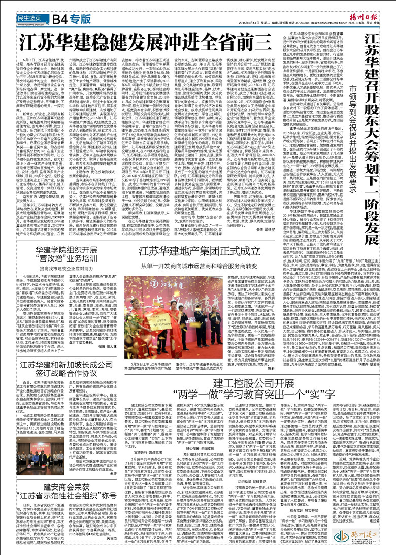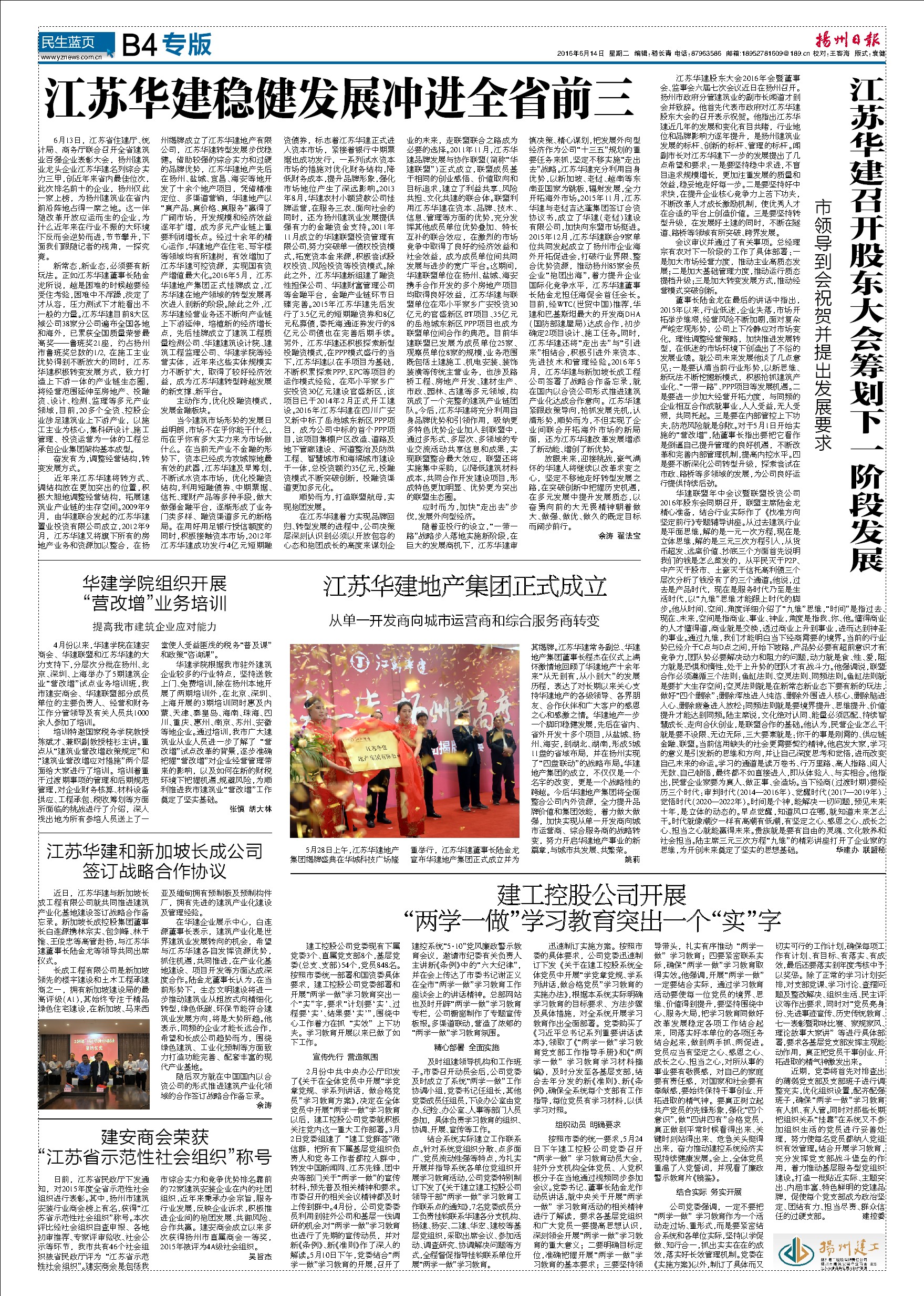 今日《扬州日报》刊登专版文章报道华建进入全省前三有关消息 时间:2016-06-14 4069 今天出版的《扬州日报》B4“扬州建工”专版刊登了半岛官网入口网页版稳健发展冲进全省前三、华建股东大会、华建地产集团成立、“两学一做”学习教育等相关文章,欢迎关注。