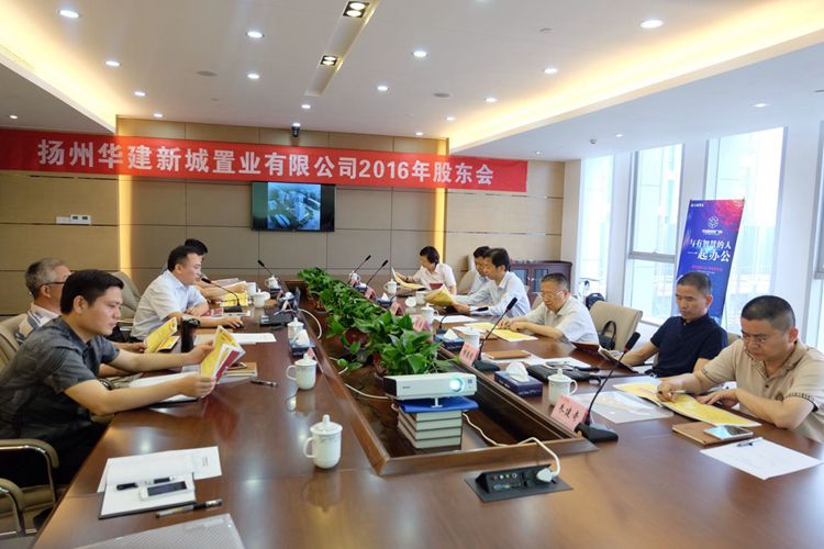 6月15日,华建地产集团在华城科技广场召开了扬州华建新城置业股东会,会议由地产集团董事长程杰主持,公司董事长陆金龙、监事会主席吴士茂及各股东单位代表、公司经营层出席会议。
