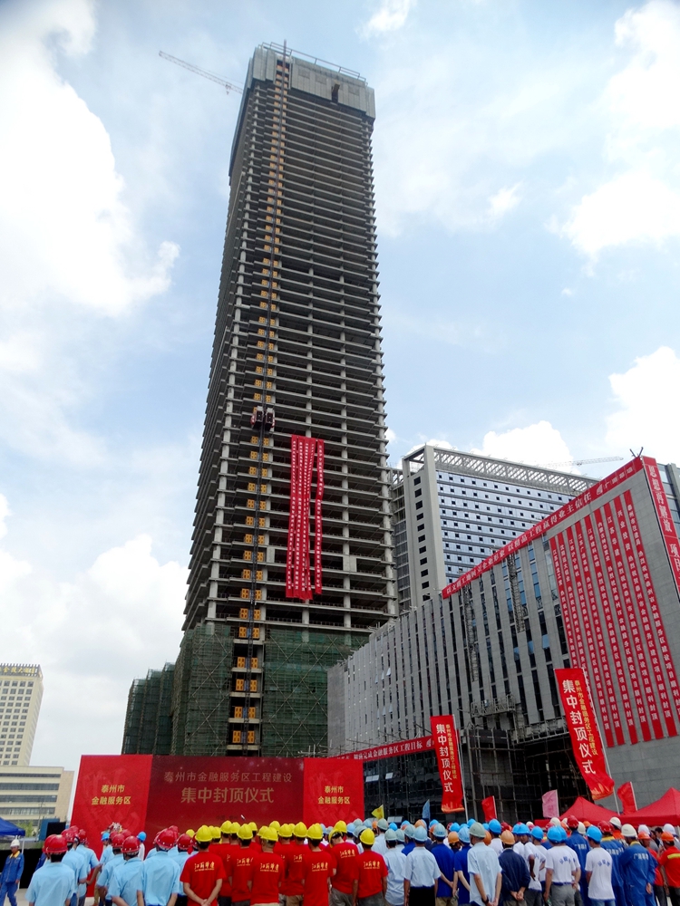 高达248米 苏中目前最高楼房:泰州金融服务区6号楼由半岛官网入口网页版建造,并创造4天一层的“泰州速度”——苏中第一高楼“华建造”