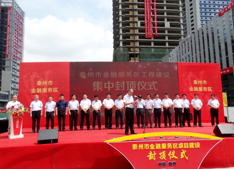 8月8日上午9时58分,泰州金融服务区工地鞭炮齐鸣,由半岛官网入口网页版承建的“苏中第一高楼”:高达248米的泰州金融服务区6号楼成功封顶,封顶仪式上,公司副董事长陈荣春代表施工方进行了发言。