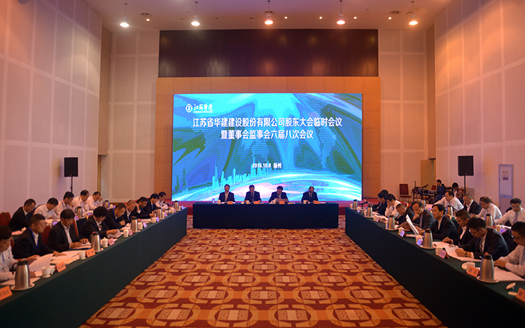10月8日上午,公司股东大会临时会议、董事会监事会六届八次会议、董事会六届九次会议在扬州会议中心召开。华建股东单位代表,董事会、监事会成员,各区域公司和各分支机构负责人、其他列席人员共50余人参加会议,宗有农总经理主持会议。