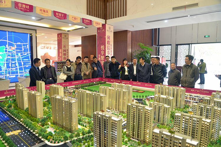 11月16日下午,省住建厅副巡视员纪迅在来扬开展“三解三促”调研活动期间,专程参观考察了华建地产集团开发的ART上院项目。市建工局副局长成自勇及公司领导王宏、程杰等参加活动。
