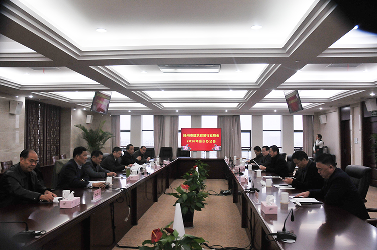 1122日上午,扬州市建筑安装行业商会在扬建集团会议室召开2016年会长办公会,10家会长、副会长单位负责人参加会议,扬州市工商联(总商会)党组书记陈荣进、会员处处长田德兵应邀参加会议,商会秘书长列席会议。