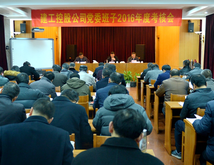 另讯,2月6日上午,建工控股公司在一楼会议室召开了党委领导班子2016年度考核会。市国资委副主任顾克荣带领的考核组成员一行到会指导。会上,公司党委书记、董事长王宏代表建工控股公司党委领导班子和个人作述职述廉述学述法报告,宗有农总经理也在会上作了个人述职述廉述学述法报告,党委其他委员分别作书面述职述廉述学述法报告。市国资委顾克荣副主任作了点评讲话。会上,党委书记王宏分别与扬建集团、建筑中专校党组织负责人签订了党风廉政建设责任状。参会人员对建工控股公司党委领导班子和班子成员分别进行了民主测评,对公司选人用人工作和新选拔任用干部进行了民主评议。会后,党委书记王宏和纪委书记钱启明又向国资委考核组专题汇报了党风廉政建设情况。