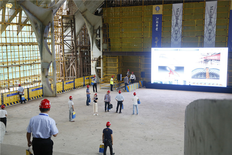 观摩过程中,来自全国各地的同行们现场提问、互动交流、相互切磋,不少代表用单反、DV等记录现场发现的特色和亮点,有的甚至用手机进行现场直播。参会代表们对工程的曲面造型和施工工艺纷纷竖起大拇指,对混凝土叶片的模板裁切工艺点赞称绝,都为华建人精益求精、追求极致的工匠精神所震撼、所折服。