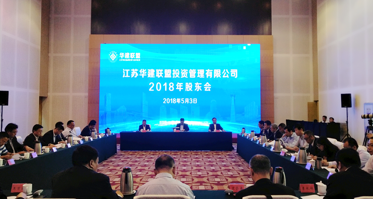 5月3日上午,江苏华建联盟投资管理公司2018年股东大会在扬州会议中心召开,股东代表、董事、监事、建工控股公司领导和联盟投资公司经营层人员等参加会议,投资公司董事长程杰主持会议。