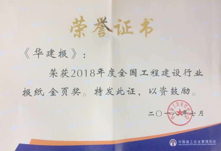 《华建报》再获“全国工程建设行业报纸金页奖” 时间:2018-07-23 4567 7月18日至20日,中国施工企业管理协会2018年度工程建设企业文化论坛暨通联员工作会议在苏州召开。公司内刊《华建报》再度获评“2018年度全国工程建设行业报纸金页奖”,公司翟法宝获评“2018年度中国施工企业管理协会优秀联络员”。