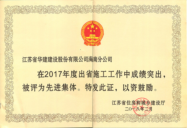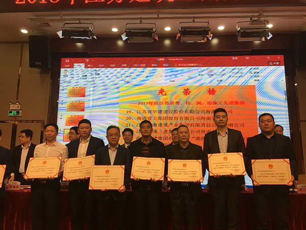 近日,在2018年江苏建筑业南方片区和中南片区年度工作会议上,江苏省住建厅发文表彰了一批出省施工先进集体和先进个人,海南公司被表彰为2017年度出省施工先进集体,公司副总、海南公司总经理陆俊以及杜宇、李明被表彰为先进个人。此外,芦开春、生小荃和汤小庆分别被江苏省驻深圳(广州)办事处表彰为质量安全、经营财务和新闻报道先进个人。