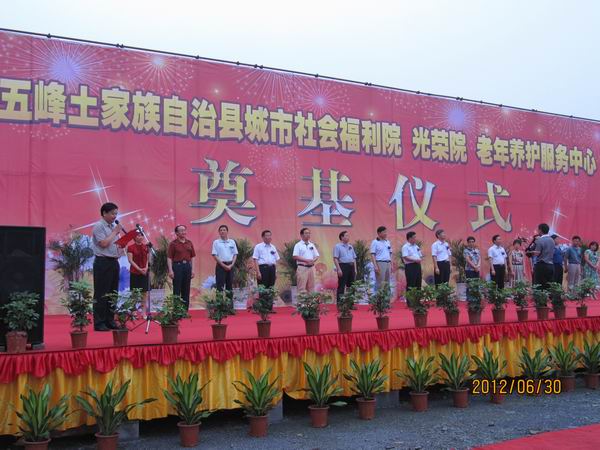 作为五峰新县城迁建的首个重点项目,“五峰民政园”是一个集城市社会福利院、光荣院、老年养护服务中心、城市流浪人口救助站暨未成年人救助保护中心和儿童福利指导中心等设施于一体的高标准民政服务中心。仪式上,省民政厅副厅长赵显富在致辞中强调本项目的重要性,要求各参建单位精心组织,科学施工,加快进度,保质保量完成任务;要按照“全国一流、全省领先”的工作要求,抢抓机遇,用足政策,真正把“五峰民政园”建成民心工程、德政工程、精品工程。