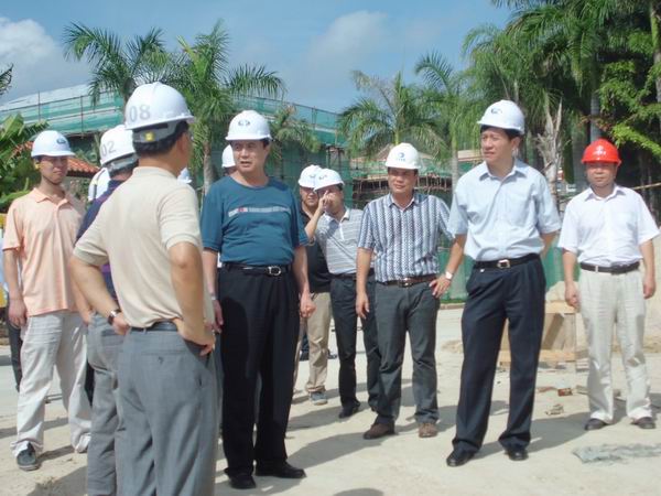 海南省委书记罗保铭等视察海南公司 时间:2012-07-08 4260 6月6日下午,海南省委书记罗保铭,省委常委、副省长、三亚市委书记姜斯宪冒着高温来到我公司承建的鹿回头国宾馆二期扩建项目现场视察慰问,公司副总经理、海南分公司总经理王宏陪同视察。罗书记对华建的施工进度和质量表示满意,同时要求华建把工程当做作品来抓,按时交付代表海南水平的精品项目。罗书记高度评价半岛官网入口网页版的综合实力,认为华建在海南承建了许多重点项目,是一支有实力、善打硬仗的队伍。姜斯宪副省长希望华建在海南继续保持良好发展势头,为江苏建筑业争光。