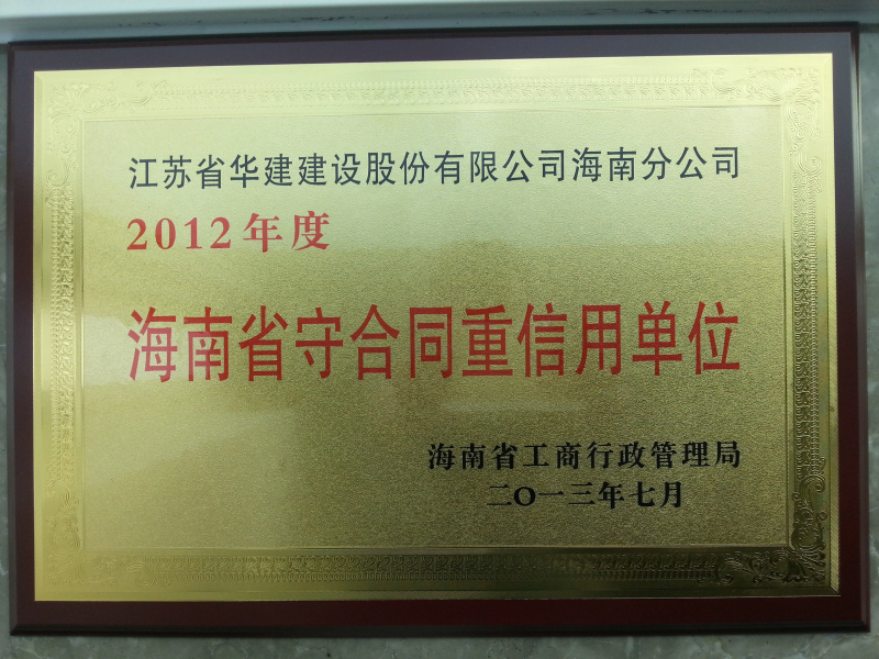 海南分公司喜获海南省守合同重信用单位荣誉称号 时间:2013-09-02 3436 8月底,海南分公司被海南省工商行政管理局表彰为2012年度“海南省守合同重信用单位”,这是公司连续21年获此殊荣。多年来,海南公司坚持诚信为本,努力树立品牌意识、形象意识,通过真诚服务赢得顾客的信赖、市场的拓展,在工程施工中信守合同,确保质量和工期,取得了卓有成效的业绩。