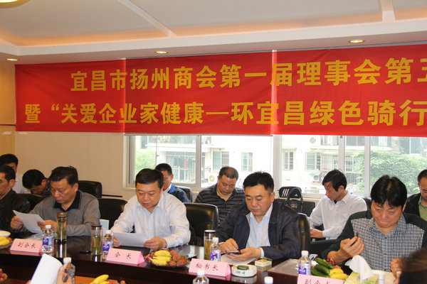 5月17日,宜昌市扬州商会一届五次理事会暨“关爱企业家健康-环宜昌绿色骑行活动”启动仪式在宜昌3E商务大厦召开。