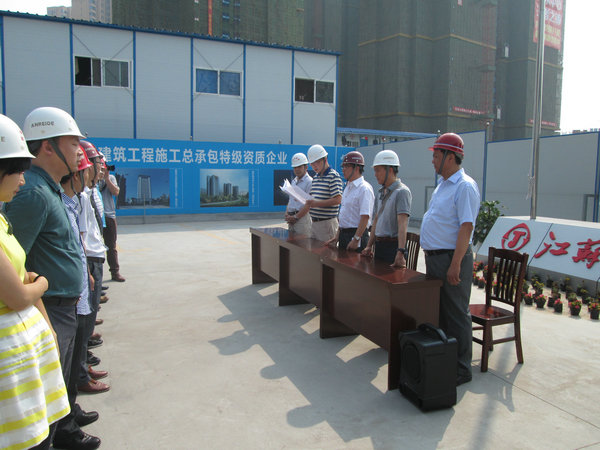 为深入践行群众路线,切实服务项目建设,在活动中 “精神提振、工作提标、行政提效、服务提质”,6月9日上午,宜昌市住建委党的群众路线教育实践活动“百名服务专员进项目”活动在我公司承建的兴发广场项目部正式启动,市建设工程质量(安全)监督站等相关单位的六十余名服务专员参加了启动仪式。