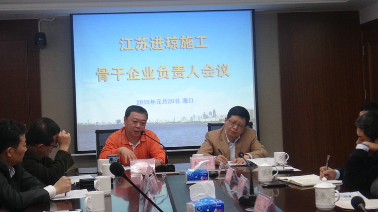 1月20日下午,由江苏省住房和城乡建设厅驻南方办事处和海南省江苏商会驻琼建工专委会联合主办的2014年度“江苏进琼施工骨干企业负责人会议”在半岛官网入口网页版海南分公司会议室召开,会议由江苏省住建厅驻南方办事处朱跃斌主任主持。
