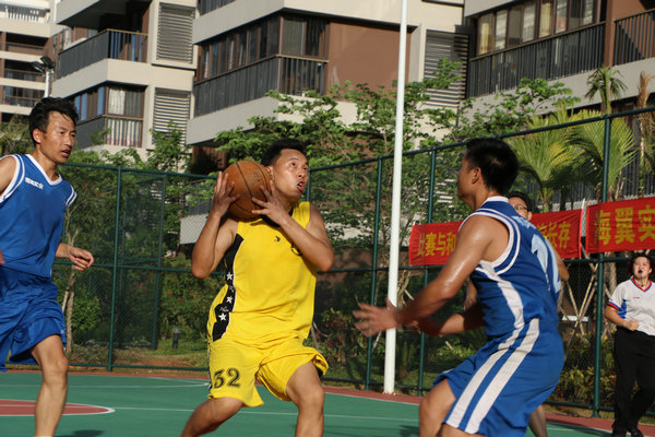 6月的椰岛骄阳似火,但阻挡不了大家的热情,现场气氛十分热烈,欢呼声、喝彩声此起彼伏,双方队员你争我赶,比分不相上下。这里没有专业的运动员,有的是一群激情四射、挥洒青春的热血男儿;这里没有工作的压力,有的是一种拼搏向上、团结友爱的精气神。