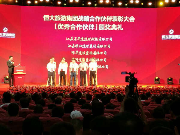 我司被恒大旅游集团评为“优秀合作伙伴” 时间:2017-08-18 2914 7月30日,恒大旅游集团在海南儋州海花岛隆重举办“恒大旅游集团战略合作伙伴表彰大会暨海花岛动工两周年庆”。我司凭借与恒大旅游集团的良好合作,被授予“优秀合作伙伴”称号,公司项目经理吕正喜被评为“优秀项目经理”。公司副总、海南公司总经理陆俊代表公司参会并上台领奖。 另:恒大旅游集团对正在主体施工的单位进行了2017年第二季度综合评价,我司以综合得分82.32分位列21家战略合作伙伴之首。 (生小荃)